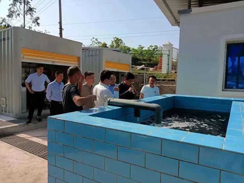 在東林村現場,閣林環保工作人員詳細介紹了北控水務與閣林環保聯合打造的達標/灌溉雙標準污水處理示范站點。達標/灌溉雙標準一體化設備是北控水務杭世珺工作室與閣林環保聯合研發的重點成果之一,具有達標排放和灌溉利用雙模式快速切換功能,有效實現污水處理與尾水還田相結合,具有水肥一體、標準靈活、低碳降耗、智能控制4大特色,為實現農村生活污水節能減碳處理及資源化利用提供了全新選擇。
