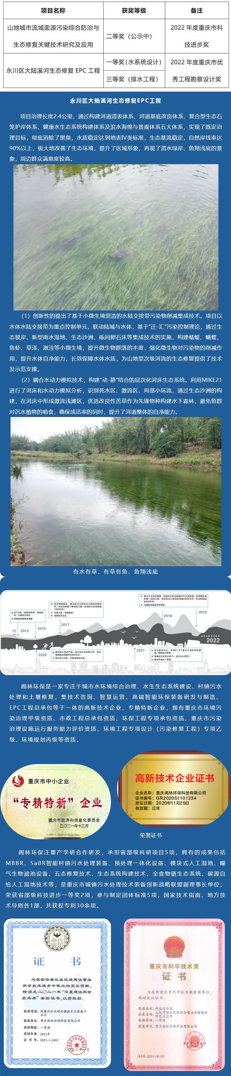 近日,閣林環保在2022年度重慶市科技進步獎、重慶市優秀工程勘察設計獎評選中,捷豹頻傳,分別榮獲2022年度重慶市科技進步二等獎1項(公示中)、2022年度重慶市優秀工程勘察設計獎2項。