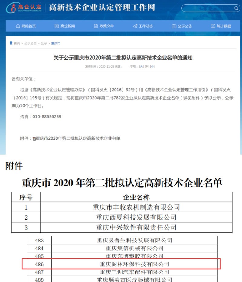 根據《高新技術企業認定管理辦法》和《高新技術企業認定管理工作指引》有關規定,高新技術企業認定管理工作領導小組辦公室于2020年11月25日公布了重慶市2020年第二批擬認定高新技術企業名單的通知。