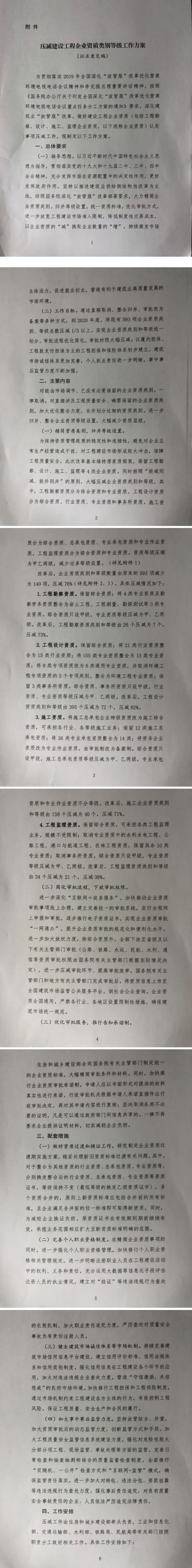 4、工程設計資質。保留綜合資質;將21類行業資質整合為15類行業資質;將155類專業資質整合為13類專業資質;將8類專項資質改為6類通用專業資質,并取消環境工程專項資質的5個專項類別,整合為環境工程專業資質;保留3類事務所資質。綜合資質、事務所資質只設甲級,行業資質,專業資質等級壓減為甲。乙兩級。改革后,工程設計資質類別和等級由395個壓減為72個,壓減82%。