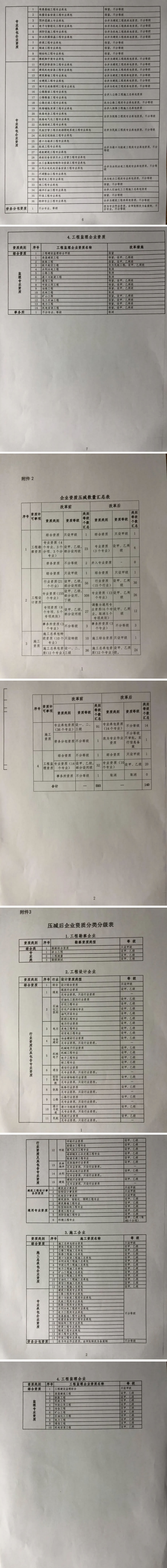 2、施工資質。將施工總承包企業特級資質改為施工綜合資質,可承擔各行業、各等級施工業務;保留12類施工總承包資質;將36類專業承包資質整合為14類;將勞務企業資質改為專業作業資質,由審批制改為備案制。綜合資質只設甲級,施工總承包資質等級壓減為甲、乙兩級,專業承包資質和專業作業資質不分等級。改革后,施工企業資質類別和等級由138個壓減為40個,壓減71%。